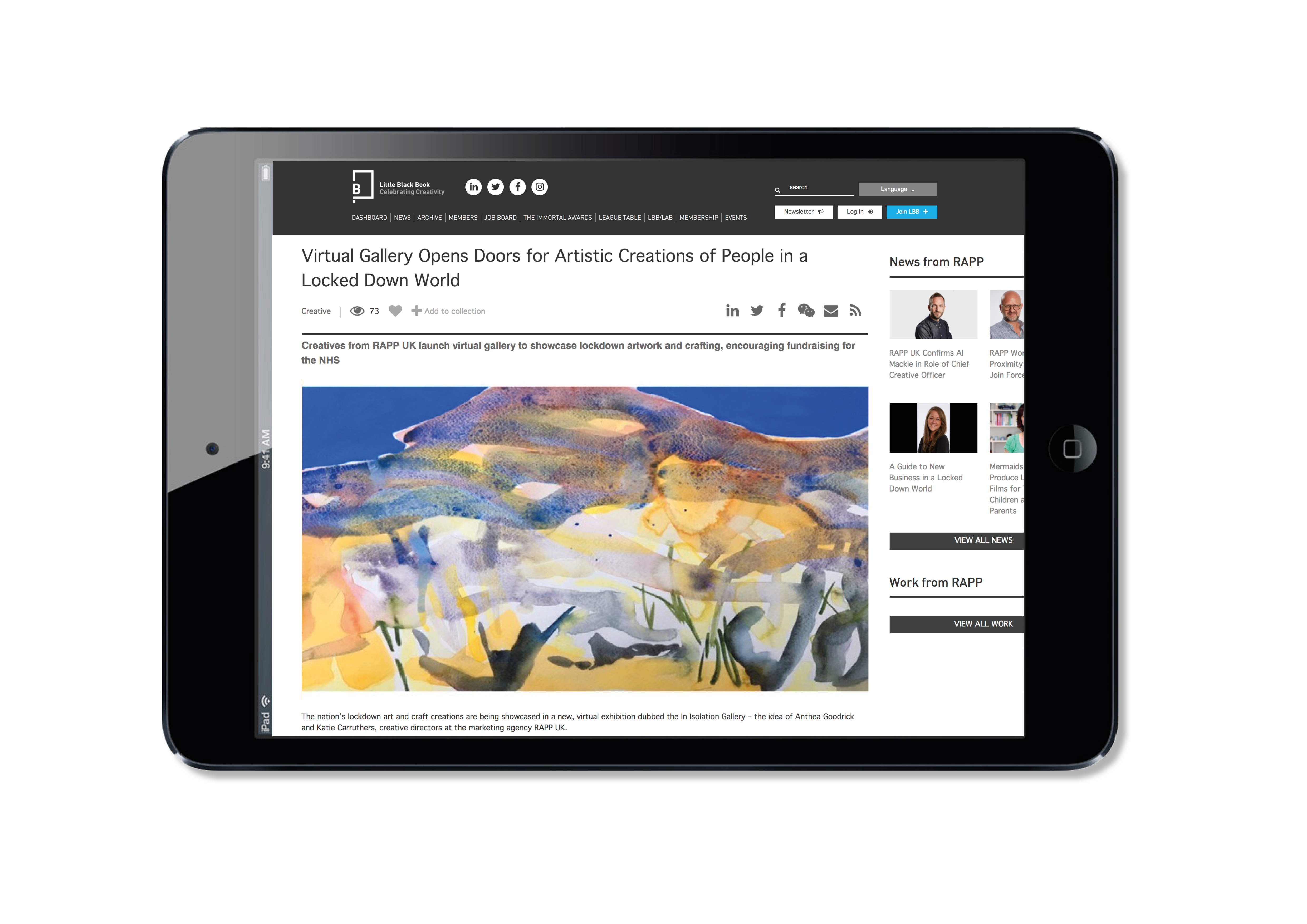 IN ISOLATION GALLERY During lock down I was making so much art and craft with my daughter. I thought this must be happening up and down the country too with others stuck at home. Rather it end up in recycling why not capture it in a virtual gallery - a space to celebrate what we did and how we felt and raise money for NHS Together Charity. Read more here https://www.lbbonline.com/news/virtual-gallery-opens-doors-for-artistic-creations-of-people-in-a-locked-down-world/
